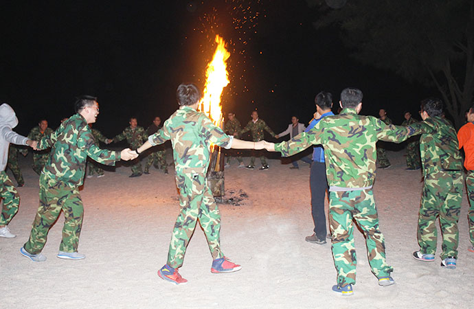 一天的紧张训练项目结束后,大家都已经饥肠辘辘了,晚上六点,烧烤篝火晚会正式开始。