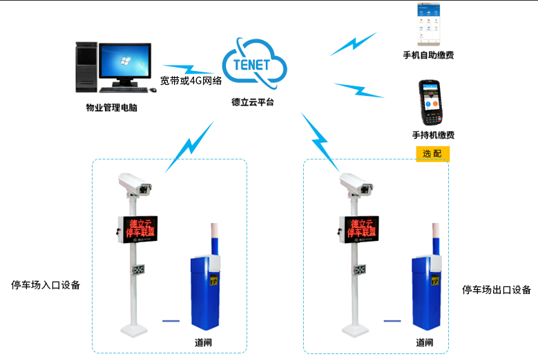 德立云车牌识别云平台无线版应运而生,适用于微小型停车场,通过中国移动无线通讯网络连接云平台,对出入停车场的车辆进行实时在线管理,集成了车辆进出管理、收费管理、语音提示等多种实用技术,无需外部网络布线,能在解决停车场管理难题的同时,将投入成本缩减到最少。